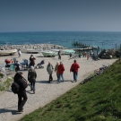 Po uroczystym, obfitym śniadanku, pakujemy manele, mapy, nawigacje i śmigamy na następną wycieczkę. Tym razem najdalej wysunięta na północ część Rugii Cap Arkona. Samochodem docieramy na wielki parking (niestety płatny:)) i z parkingu kolejką do wioski rybackiej Vitt. Malowniczo położona, stara wioska rybacka z chatami krytymi strzechą i kamienistą plażą. Z wioski do Cap Arkona idziemy plażą. Jest całkiem ładna pogoda jak na kwiecień, świeci słońce i nawet robi się gorąco przy podejściu na schodach z drewna, które prowadzą do punktu widokowego i latarni.